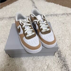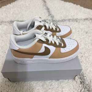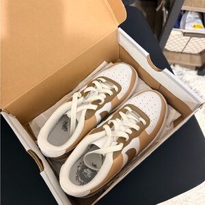 Comfortable Nike sneakers for Woman/ Kids White and brown design. Ideal for daily activities. Worn Once. Custom Ordered.