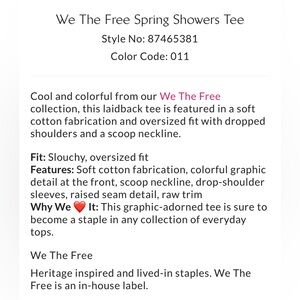FREE PEOPLE WE THE FREE Spring Showers Tee T-Shirt XS Oversized