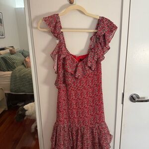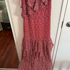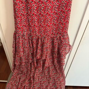 MARISSA WEBB Red Floral Ruffle Tiered Midi Dress