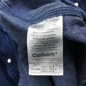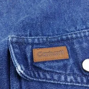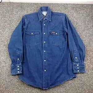 Vintage Carhartt Denim Pearl Snap Shirt Mens Medium Blue Heavy Western Work S141