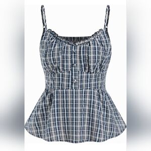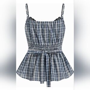 CIDER Gingham Babydoll Tank Top Blue Plaid Size Large NWT 2026