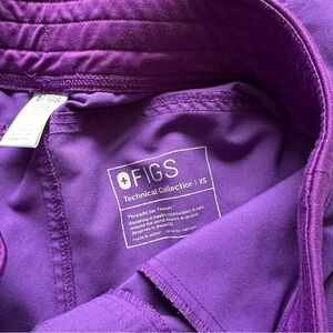 Figs Ultra Violet Purple Scrubs Set. Features XS regular length Kade cargo pants and XS Catarina One-Pocket top in a highly desirable retired purple color called Ultra Violet with pink waist tie. Good used condition. No fading, pilling, or stains.