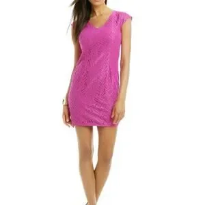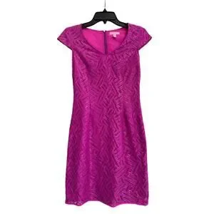 Lilly Pulitzer Selassie Fuchsia Pink V Neck Cap Sleeve Dress Sz 0 GS