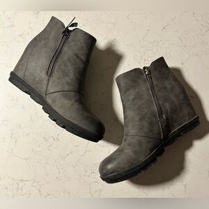 Athlefit Waterproof Gray Wedge Ankle Boots Size 9