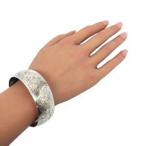 This vintage cuff bracelet by S. Kirk & Son features a repousse chrysanthemum floral pattern in classic sterling silver.
