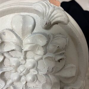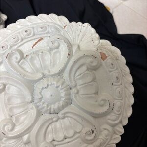 Elegant white wall decor with i floral designs. Perfect for adding a touch of sophistication to any room. Some wear and cracks