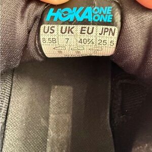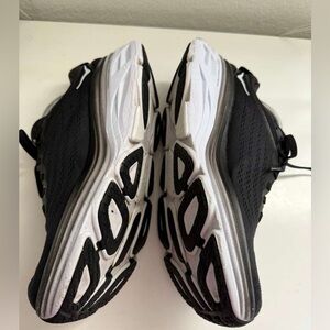 Sleek black Hoka sneakers. Ideal for running and casual wear.