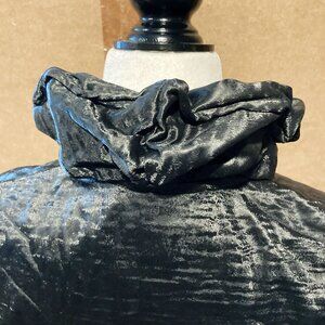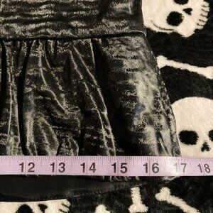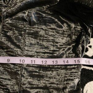 Highlights include the tall ruffled collar that includes flexible internal wire to help it keep its shape and height, sturdy aged brass/gold tone metal snaps, an adjust cord on the back to help cinch in or let out the waist a bit, an all-over pattern that is quite reminiscent of moiré silk, and the fact that this topper can be worn as either a lightweight outerwear jacket or a blazer, as one desires. 🖤