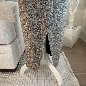 Chic gray pencil skirt with front slit. Perfect for a stylish look.