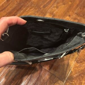 Chic black shoulder bag by Michael Kors. Features silver hardware and a stylish buckle design. Perfect for any occasion.