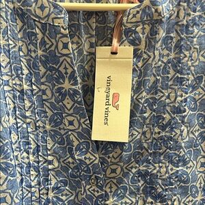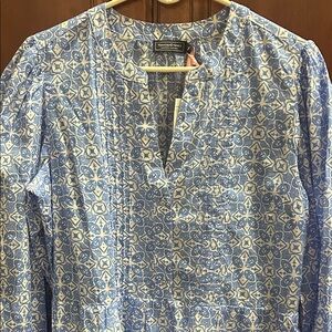 Chic long sleeve 100% cotton dress with a blue and white pattern. Fully lined Perfect for versatile styling.