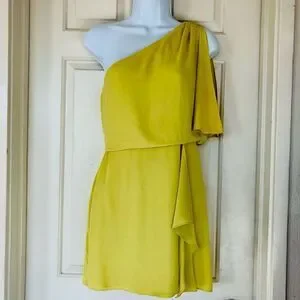 BCBGMAXAZRIA Mina Dark Lime One Shoulder Mini Dress