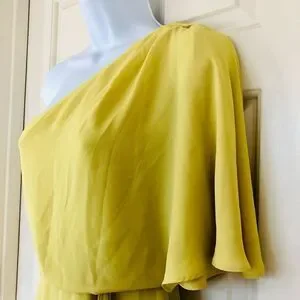 One shoulder drapey mini dress.