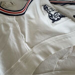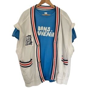 NWT. Collegiate-inspired, this oversized vest from Free People’s We The Free collection is made of soft cotton with a slouchy silhouette, striped trim and embroidered detailing. Great piece for layering over tanks, graphic tees, button downs, etc.