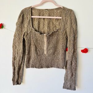 Free People Confection Brown Taupe Long Sleeve Blouse Top L