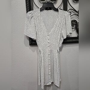 Chic and stylish, this polka dot V-neck dress is perfect for any occasion. The black and white design offers a classic look. Oysho Polka Dot V-Neck Mini Dress. Size M but fits like an xsmall and is pretty short. In excellent condition!