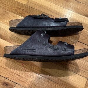 Classic black Birkenstock sandals. Features adjustable buckles. Comfortable cork footbed. Size 37