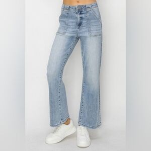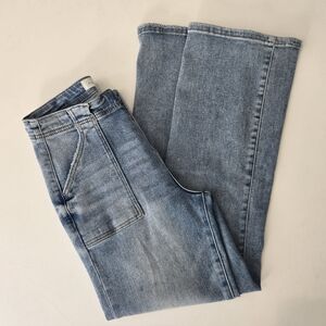 Risen Jeans High Rise Patch Pocket Ankle Flare Light Wash Women's Size 26