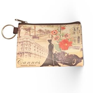 Cannes French Riviera Rare Small Zipper Coin Pouch Key Ring NEW