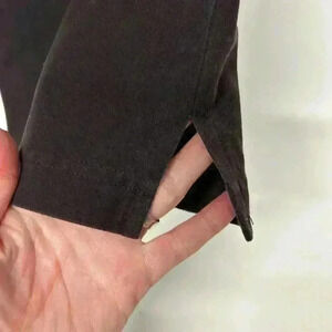 Eileen Fisher size medium chocolate, brown pants button and zipper closure on left hip rise in pants about 9 inches in steam about 27inches