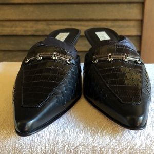 Black Croc with Woven black calf leather. Great with skirts, slacks or jeans.