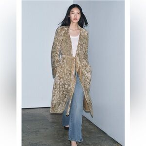 Zara Beige Velvet Embroidered Kimono Jacket