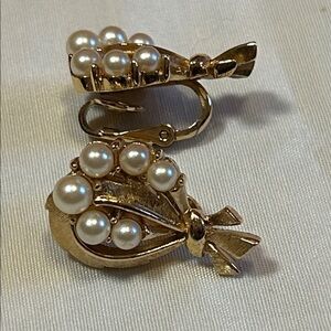 Vintage 1950-60s Crown Trifari gold-tone faux pearl clip-on earrings