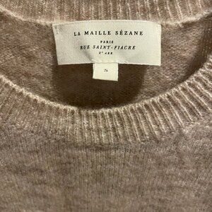 Cozy tan sweater. Soft knit fabric. Perfect for layering.