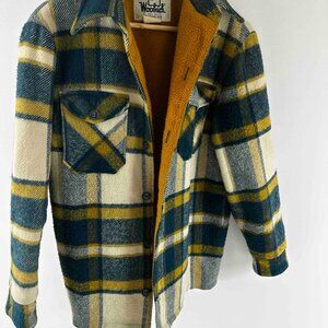 Vintaged Woolrich Jacket Mens Medium Green Yellow Plaid Wool Sherpa Lined