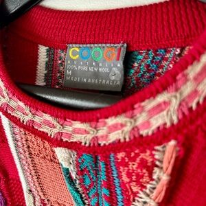 Vintage Coogi Australia 3D Textured Knit Sweater Red Multicolor Wool Size M