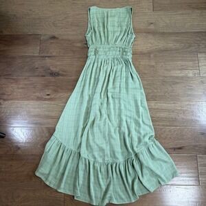 Rewind Sage Green Smocked Waist High Low Maxi Dress Button Front V Neck M
