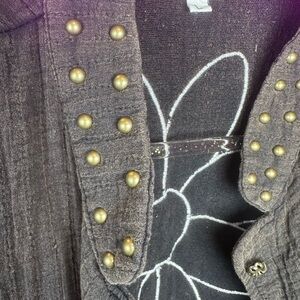 NWT POL Moonshadow oversized duster jacket in black cotton with white floral