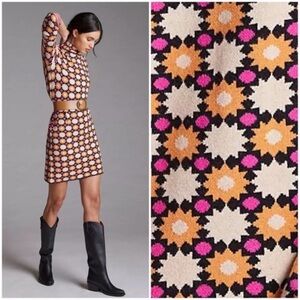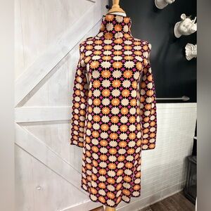 Anthropologie Maeve Retro Floral Print Turtleneck Sweater Mini Dress