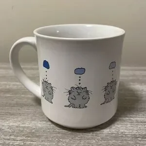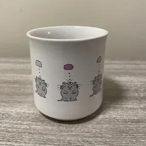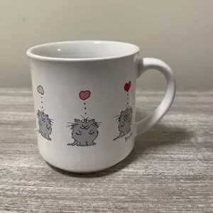 Fun mug with cat’s thought bubble turns into a heart. Excellent condition. Measures about 3 1/2” high.