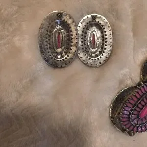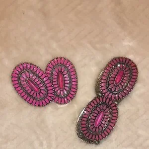 Add a pop of color to your outfit with these pink Western Concho earrings (925) and bracelet. Perfect for any occasion.