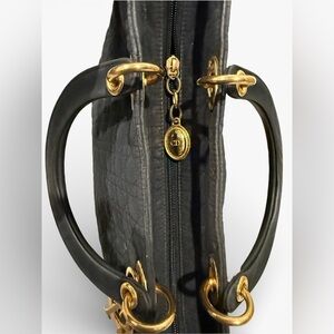 Beautiful vintage Christian Dior Lady Dior bag crafted from black quilted nylon (often referred to as canvas or cloth) with gold-tone hardware.