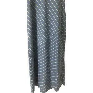 This dress exudes an understated elegance, epitomizing modern minimalism. It features stripes on an alternating bias, creating a dynamic interplay of lines that enhance its fluid silhouette. This piece embodies the relaxed yet refined essence of contemporary fashion, with a nod to effortless sophistication. The vintage blue hue imparts a timeless charm, making it a versatile staple for those seeking a blend of chic simplicity and subtle allure.