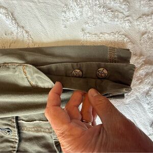 utility jacket in olive. Features button closure and multiple pockets. Ideal for casual outings.