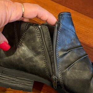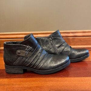 Earth Origins Black Distressed Leather Zip Slouch Ankle Boot Booties, Size 9.5