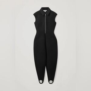 COS scuba-neoprene-like jumpsuit with a sleek zip-front design and stirrup.