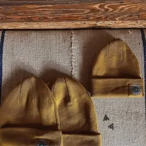 Mustard Yellow Beanie with squash blossom