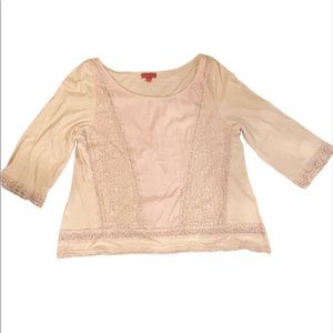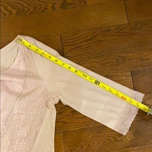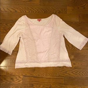 Anthropologie brand One September shirt. Very gently used (original owner). So soft and lightweight. Beautiful lace details. 3/4 length sleeves. Size medium. Gorgeous muted rose color goes with any bottom! LAST CHANCE SALE
