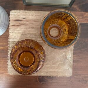 Vintage Indiana Glass Stars and Bars Amber Fairy Lamp