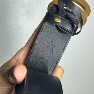 this gucci belt is in excellent pre-owned condition with no stains—like new! it comes with the original dust bag and tag. crafted from black smooth leather, it features gold-toned, antiqued brass hardware with a shiny finish and the iconic double g buckle.
