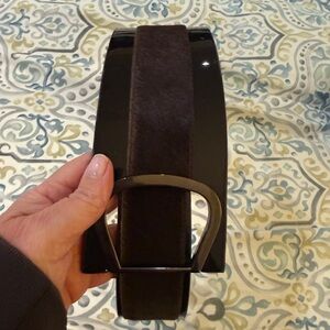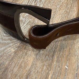 W by Worth Mixed Media Brown Leather & Calf Hair Statement Belt - Med - Like New