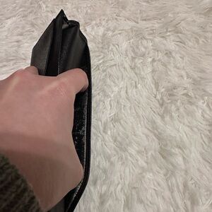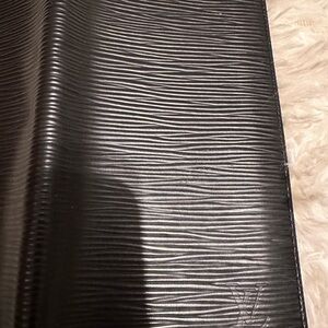 Elegant black wallet with textured design. Iconic LV branding. Sleek and stylish. The inside has peel, otherwise it’s ok condition