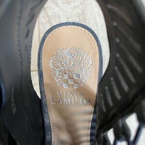 Vince Camuto Denim Blue Ankle Bootie with 5” inch zipper for easy slip on. Super cute cutout designs with peep toe. Extremely comfortable, padded insole with 3” cone heel. These are one of a kind & hard to find. Perfect for jeans!