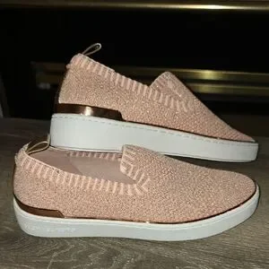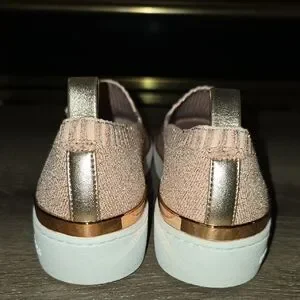 Stylish loafers with a sparkling rose gold finish. Easy slip-on design.