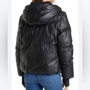 This cute, cozy puffer is winter fashion defined. The faux leather finish gives an edgy, on-trend look to elevate your cold-weather style. Stay warm while looking cool with our rib-knit cuffs with handy thumbholes for full coverage.