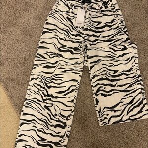 AKIRA Black and White Zebra Print Wide Leg Jeans